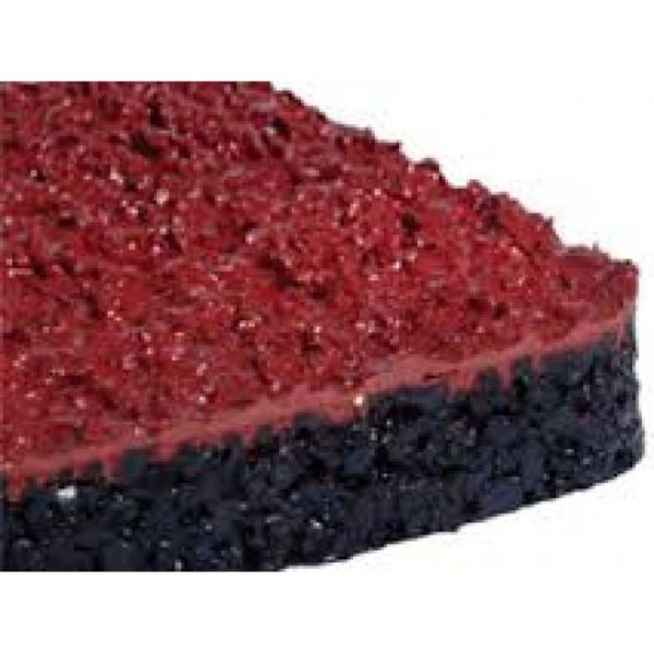 En déposant une couche de revêtement consistant en mélange de polyuréthane (ARS) plié avec de la poudre EPDM avec le EPDM rouge (0,0 – 0,5 mm) pour obtenir une épaisseur totale de 2 MM.