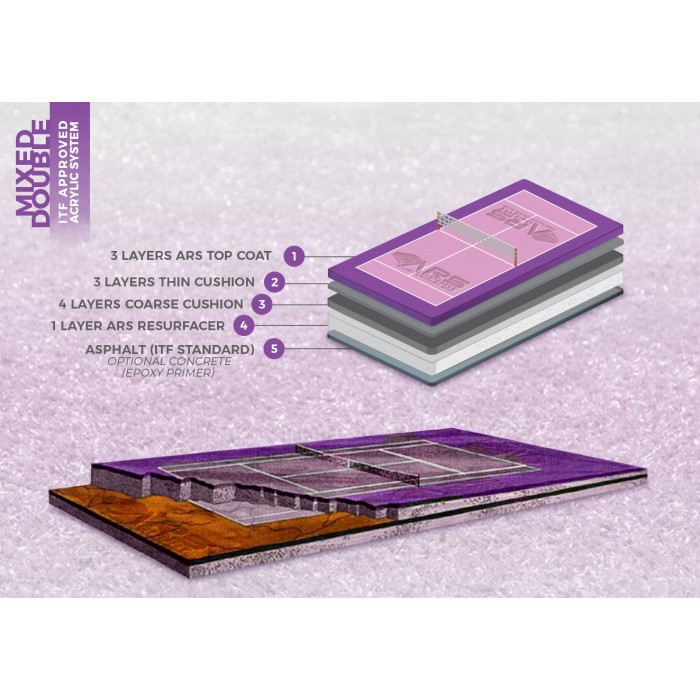 Mixed Doubles Court este o suprafață polivalentă de tenis acrilică, în aer liber, multifuncționala, potrivită pentru terenurile profesionale de tenis la nivel de turneu (ITF Catagory3 Medium)